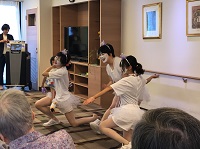 一緒に踊りました!入居者様は子どもを見るとつい目尻が下がって