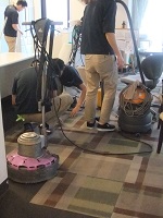 特殊な機械を使って、床のワックスがけやカーペットの汚れ除去などを