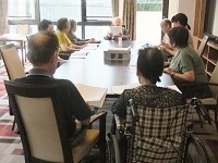 歌詞カードを持って代表の方(入居者様)が指揮をとりながら