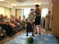 続きまして、今度は入居者様に参加していただく「スイカ割り」!