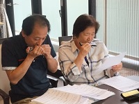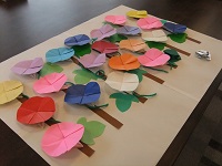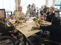 入居者の皆様と一緒に折り紙で朝顔を沢山作り