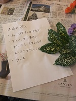 お花屋さんから持ってきて頂いたお花の名前が書かれた紙を見て
