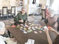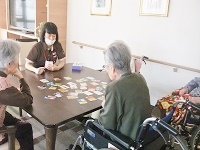 今日は皆様と一緒にかるたのレクをしました。