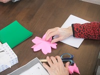 可愛らしいピンク色の折り紙で桜の花びらを作りました。