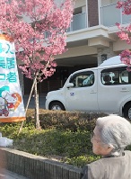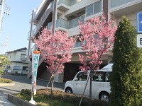 施設内の誹寒桜も満開を迎え、風が吹くと花びらが散っています。