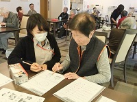 スタッフも入居者の皆様と一緒に見本をみながら折ってみましたが