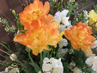 施設の玄関付近には、まるで春を想わせるような明るいお花達が