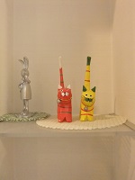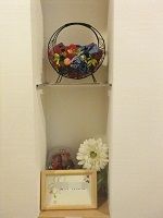 飾り棚があります。ご家族が時々お花や置物を持ってこられ