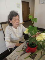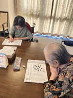 午後のおやつ前に、脳トレを終えた仲良しのお二人。