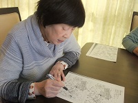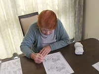 皆様がテーブルを囲んで脳トレの問題を解いています。