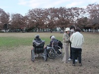 今日は午後に施設の目の前にある公園に散歩に行きました。