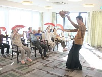 色鮮やかな扇を使って、先生の動きに合わせて