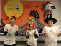 開かれました 。魔女やかぼちゃの被り物を身に着けて