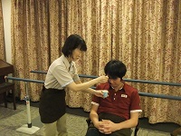 そしてスタッフでペアを組み実際にご入居者様の役になり食事介助を