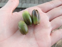 公園には、どんぐりやまつぼっくり、みかんや柿の木など