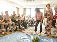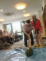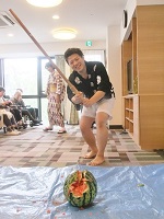 納涼祭で、入居者様にスイカ割りをやっていただきました!