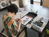 ご入居者の皆様はとても集中されて書道に取り組まれていました。