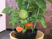 ホオズキといえば提灯のような実。最初は緑色をしていた実は