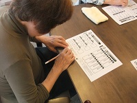 例えば、『木、立、見」を組み合わせて一つの漢字を仕上げましょう』