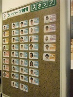 施設のエレベーター前に、スタッフの顔写真が貼ってあり