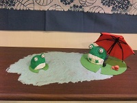 小さくて可愛い傘や親子のカエル、そして紫陽花と