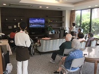 カラオケや手遊び、ハーモニカに合わせた歌などいろいろな内容を考えて行っています。