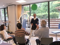 今日のリハビリのとあるチームは、風船バレーにかなり熱が入っていました!