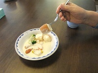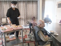 入居者様が食べやすいように工夫した結果、お皿に具材を乗せて