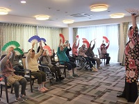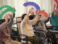 扇の前のエクササイズも、リズムをとりながら体と頭を使って