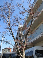 施設の敷地内にある早咲きの桜「緋寒桜」の