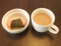 午後のおやつは桜餅でこちらも「可愛くて美味しい」