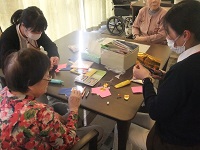 スタッフとご入居者様とどの色がいいかなどお話をしながら