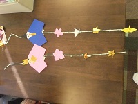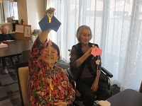 今日はレクリエーションでつるし雛を折り紙で作成しました。