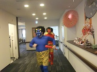 今年も盛大に豆まきをしました。ラウンジの床は豆が散らかり