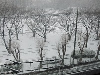 雪に慣れない地方なので、少しずつ積もり始めている様子を