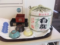 また、音が鳴ると反応しておじぎをする獅子舞やお神酒もお出迎え