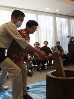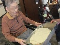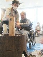 入居者様も、スタッフに手伝ってもらいながら、いい音をたててつくと