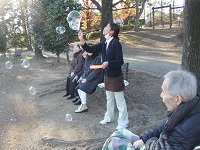 そのとき近隣の子供たちと一緒にシャボン玉で遊びました。