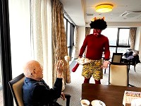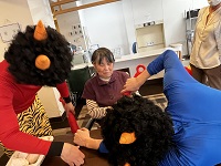背の高い男性スタッフ2人による「赤鬼」と「青鬼」が