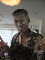 スタッフみんな交代で対抗し、顔はごらんのとおり真っ白!!