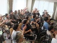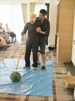 前に出てきてもらい、スタッフがうしろからお手伝いしながら