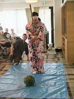 ので、最後は男性スタッフ(なぜか女性の浴衣を着ていますが・・・)に