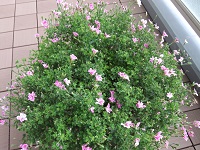 3階のラウンジにあるベランダに可愛いお花が咲いています。