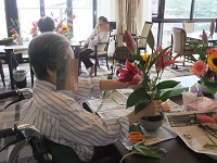ラウンジにて、筆まめな方(入居者様)のご様子をパシャリ。
