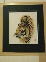 今にも飛び出してきそうな迫力のある虎の絵です。
