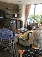 本日は歌会レクレーションの後に理学療法士による集団リハビリを行いました。皆様喜んで下さり笑顔でリハビリに励んでいました。