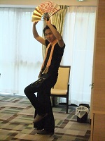 華やかな扇を持って、軽やかに舞うように動きながら