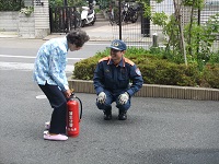 火災ベル、消火器使用(中身は水)も体験して頂きました。