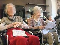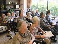 今日のリハビリは、機能訓練指導員が懐かしの歌を