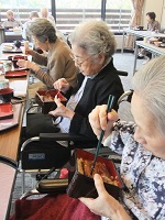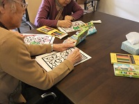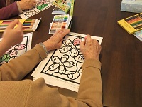 塗り絵は個性が出るので、さまざまな色のお花ができ